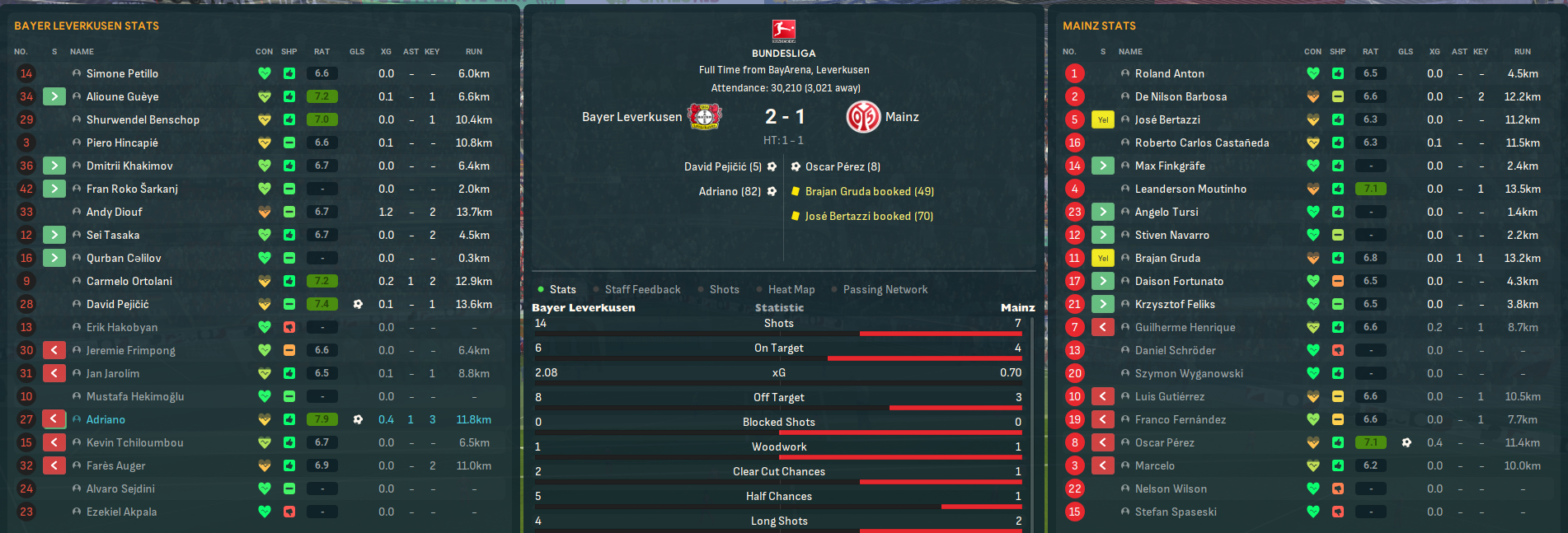 Life back in Bundesliga began with a tough test at Leverkusen, who took an early lead created by Lazaró’s former player Adriano. But Mainz struck back immediately as Brajan Gruda crossed for midfielder Oscar Pérez to tuck home. Leverkusen dominated but winger Guillermo Henrique went close twice and Adriano predictably scored a late winner. But this result offered hope about their ability to compete, and Tursi became the club’s youngest-ever player aged 17 years and 98 days.