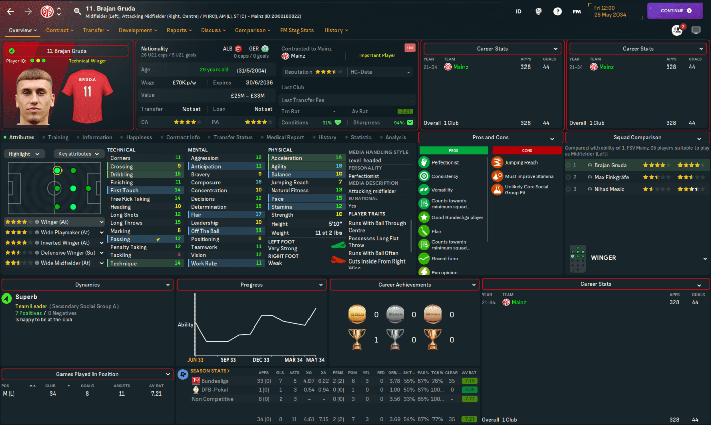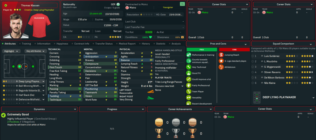But the longer-term aim, of course, is to lead Mainz to their first-ever Bundesliga title with a fully homegrown team. And that may be an even tougher task than the one Lazaró achieved in Spain, given Bayern have won every title bar one during this save and, as a result, every title bar one since in the last 22 years since 2021 – with the only exception being Leipzig in 2026. That said, this Bayern side is hardly the invincible force it often becomes, dropping points 9 times last season and 12 times the previous 2 seasons.