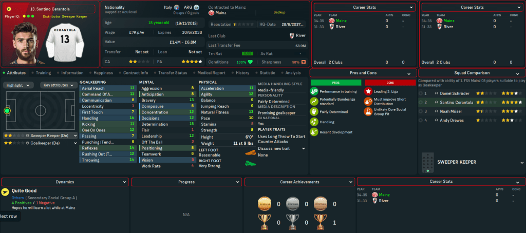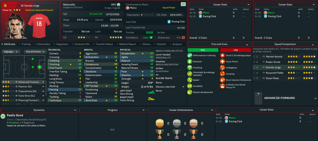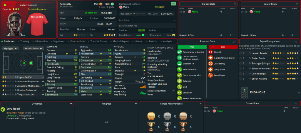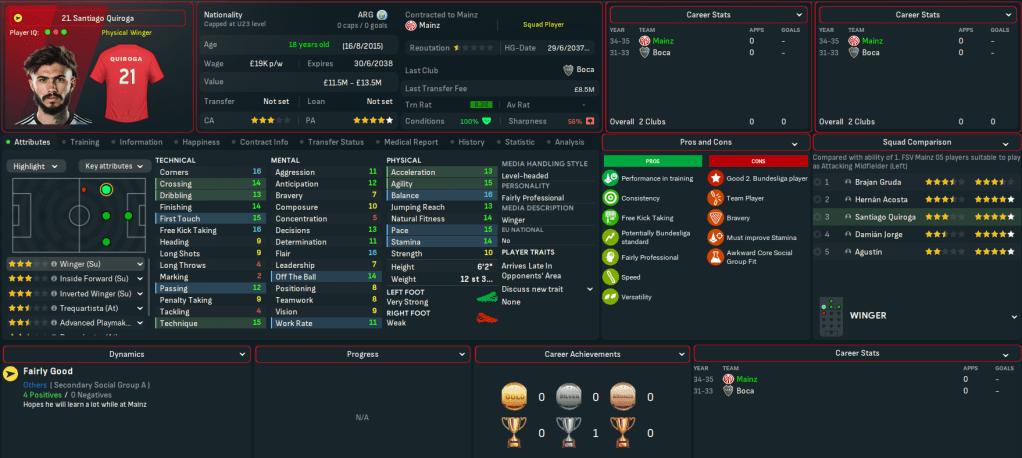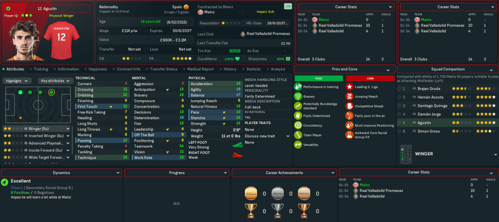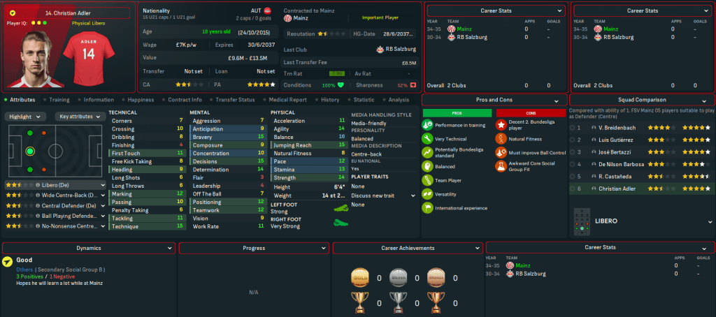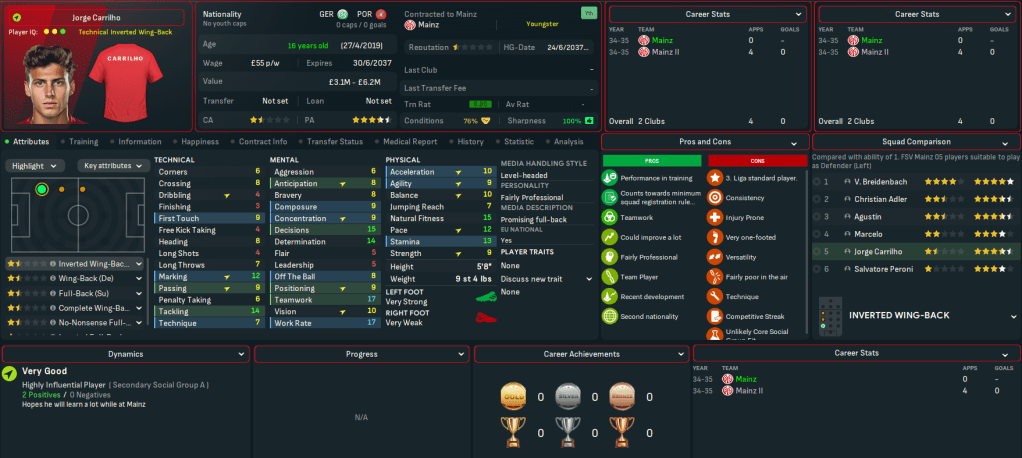 Mainz began 2025 with a 1-0 loss at 3rd-place Wolfsburg before Martínez scored his first goal in a wild 3-3 at home to 4th-place Bayern. Their away struggles continued with a 2-0 defeat at Hamburg, but they claimed just a second away win as Jorge and Gruda snuck a 2-1 victory at Stuttgart. Henrique scored at both ends in a 2-2 at home to title-battling Dortmund but Mainz’s form remained hit and miss, which saw them remain in contention for the club’s third taste of European football in this save (having played in the Europa League in 2025 and 2030).