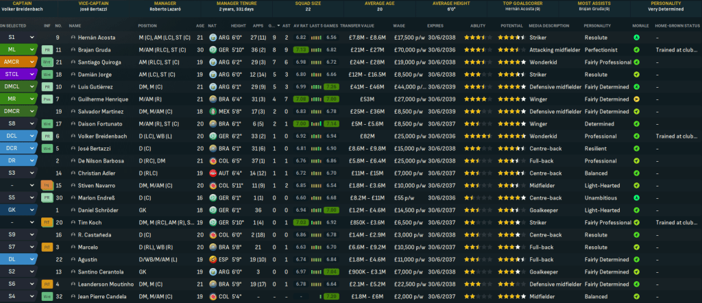 Lazaró’s plans were hit by losing Pérez to Arsenal for a decent £15m. But he unearthed a potential superstar midfielder in January 2035, signing Salvador Martínez for up to £10.5m from Pachuca.