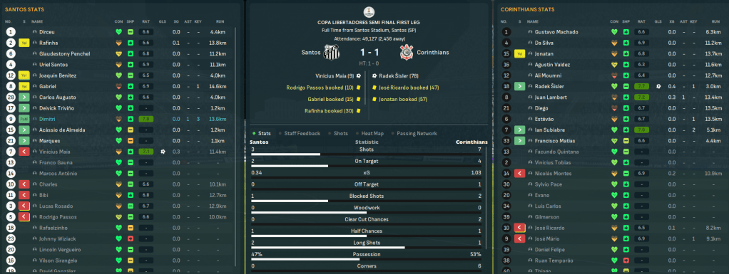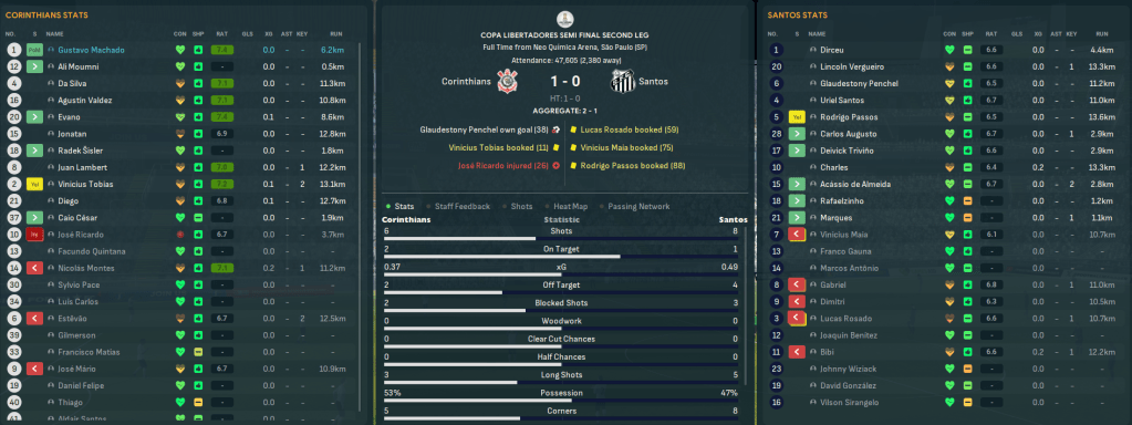 Rosario Central followed in the second round and Maia’s quickfire first-half brace inspired a 3-2 away win before an easy 3-1 home victory. An all-Brazillian clash followed against Internacional and Charles earned Santos’ favourite scoreline in a 1-0 home win before left back Rodrigo Passos earned a 1-1 away to reach the semis for the 5th time in 6 seasons. A big rival clash was up next as Santos took on Corinthians for a place in the final. Santos made a great start to the home leg as Dimitri sent Maia in for the opener after 9 minutes, but that was their last moment of threat as Corinthians grew into the game and deservedly equalised. They were equally inept away as they just couldn’t get going and Corinthians’ fluke goal sent them into a probably deserved final.