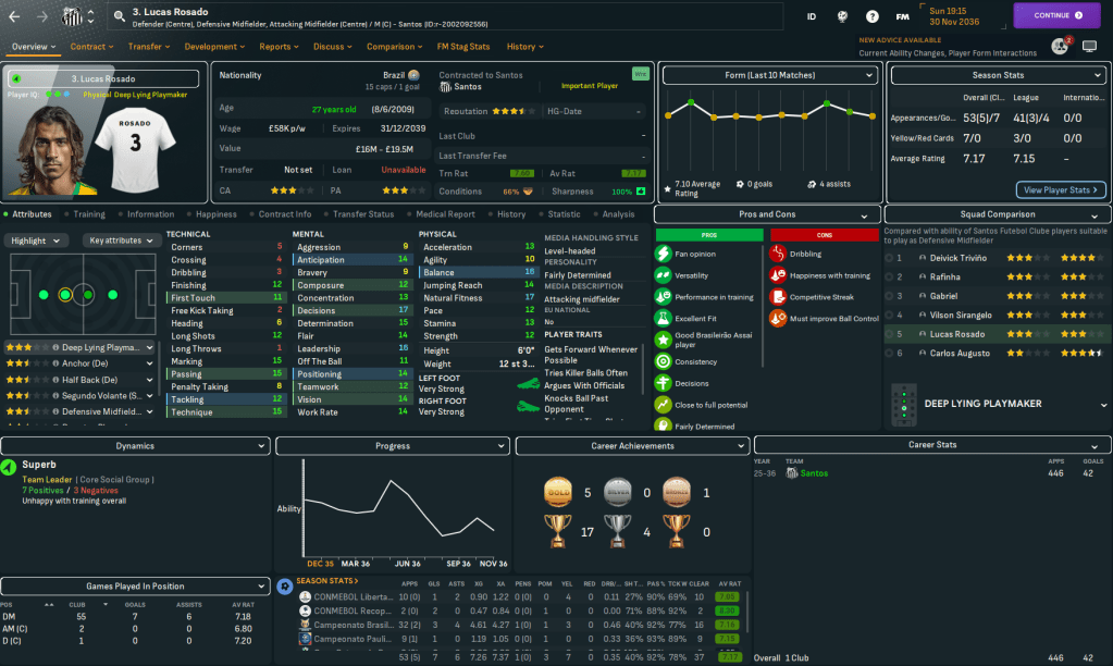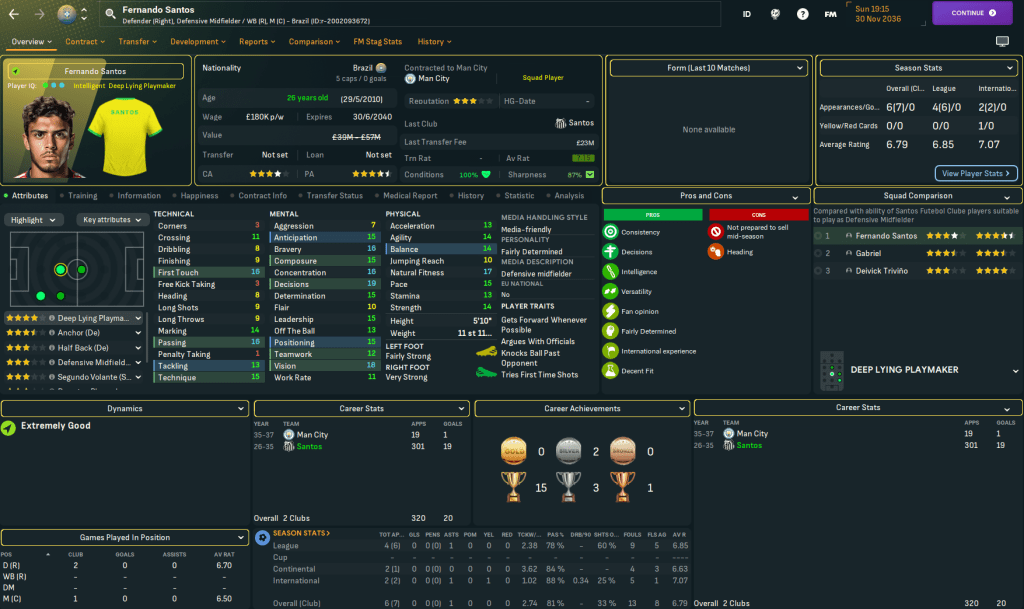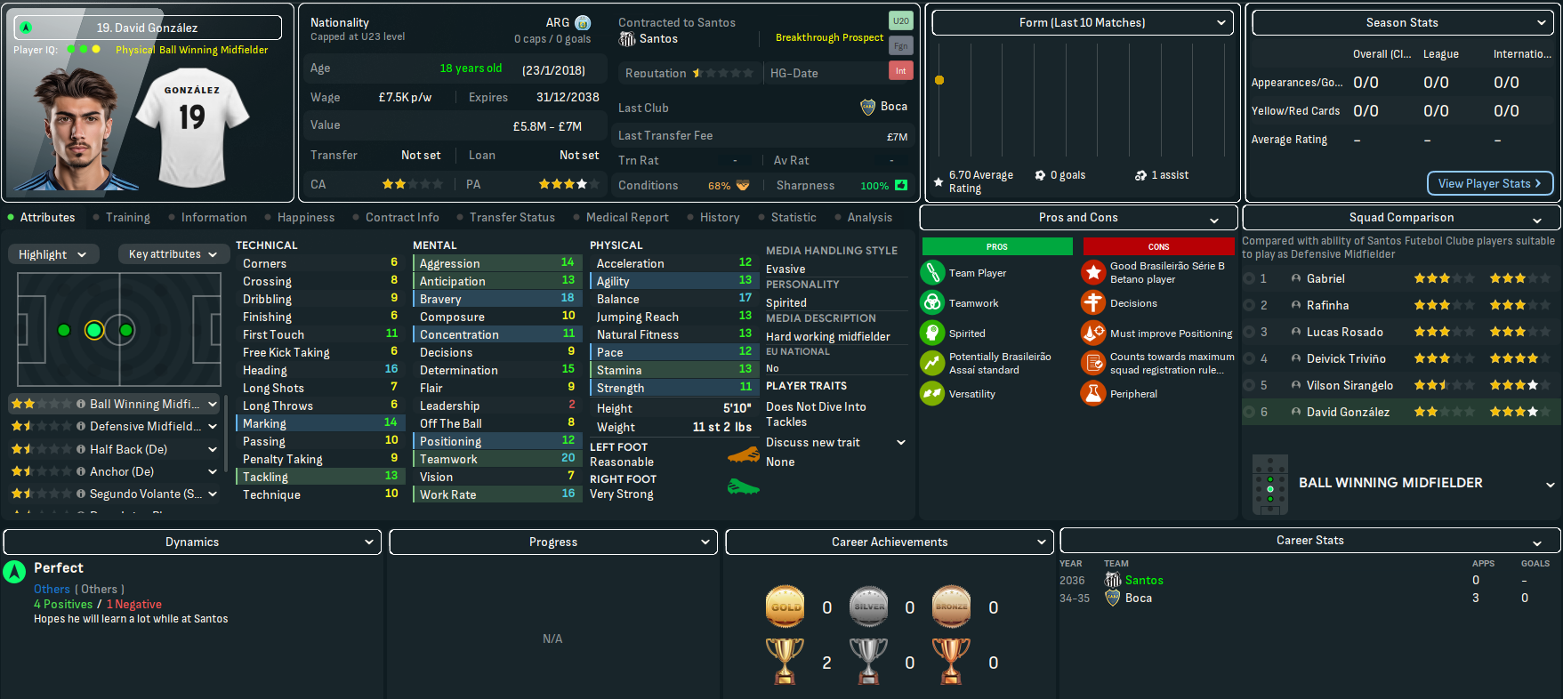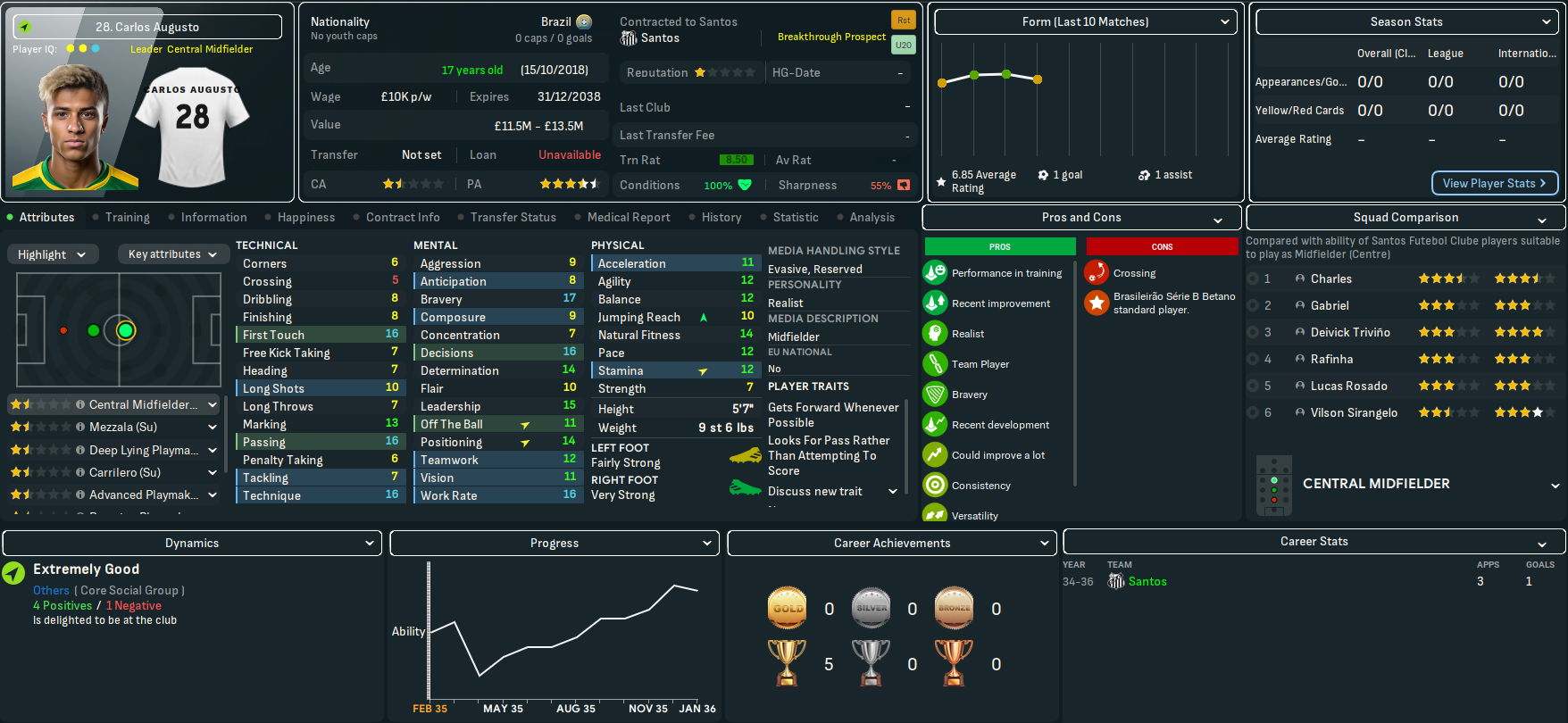 And here’s a quick gallery of Santos’ most important players and some of the homegrown stars throughout this save, including a few key players who’ve since departed the club – just click each image to enlarge their profiles.