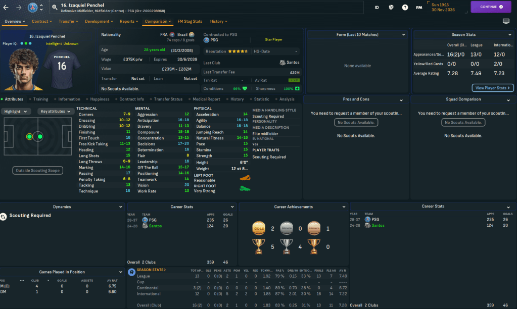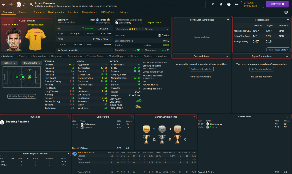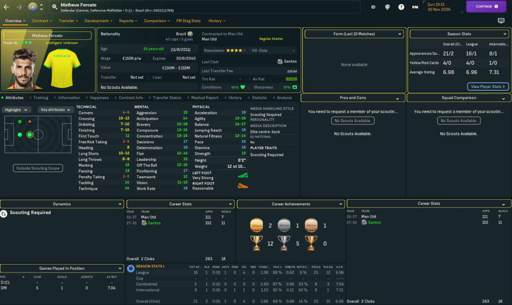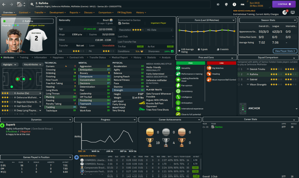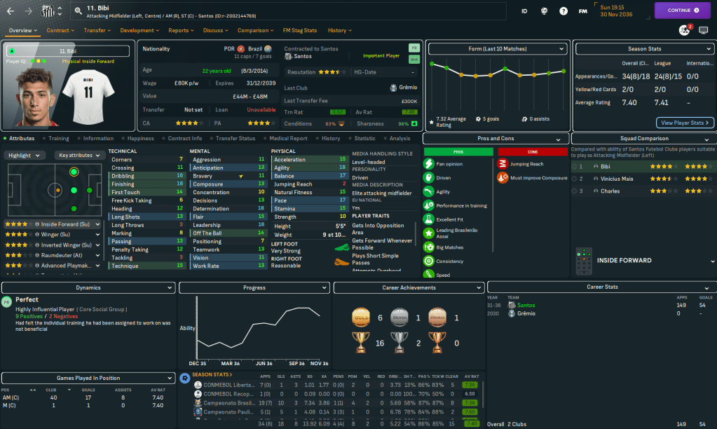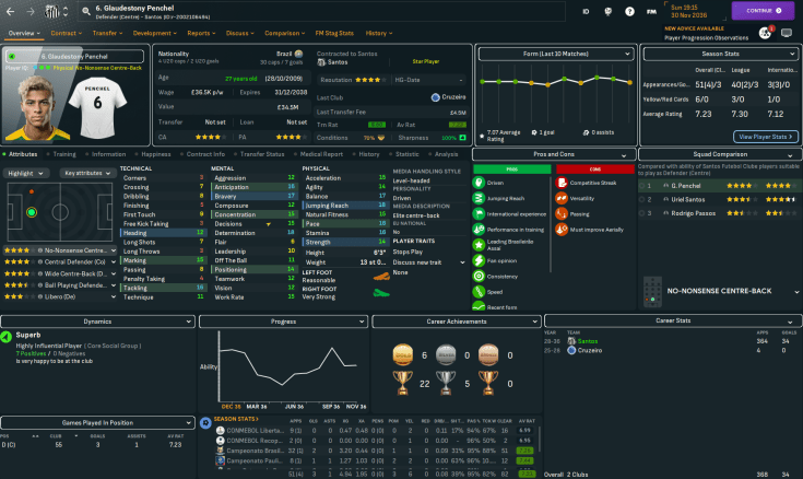 And here’s a quick gallery of Santos’ most important players and some of the homegrown stars throughout this save, including a few key players who’ve since departed the club – just click each image to enlarge their profiles.