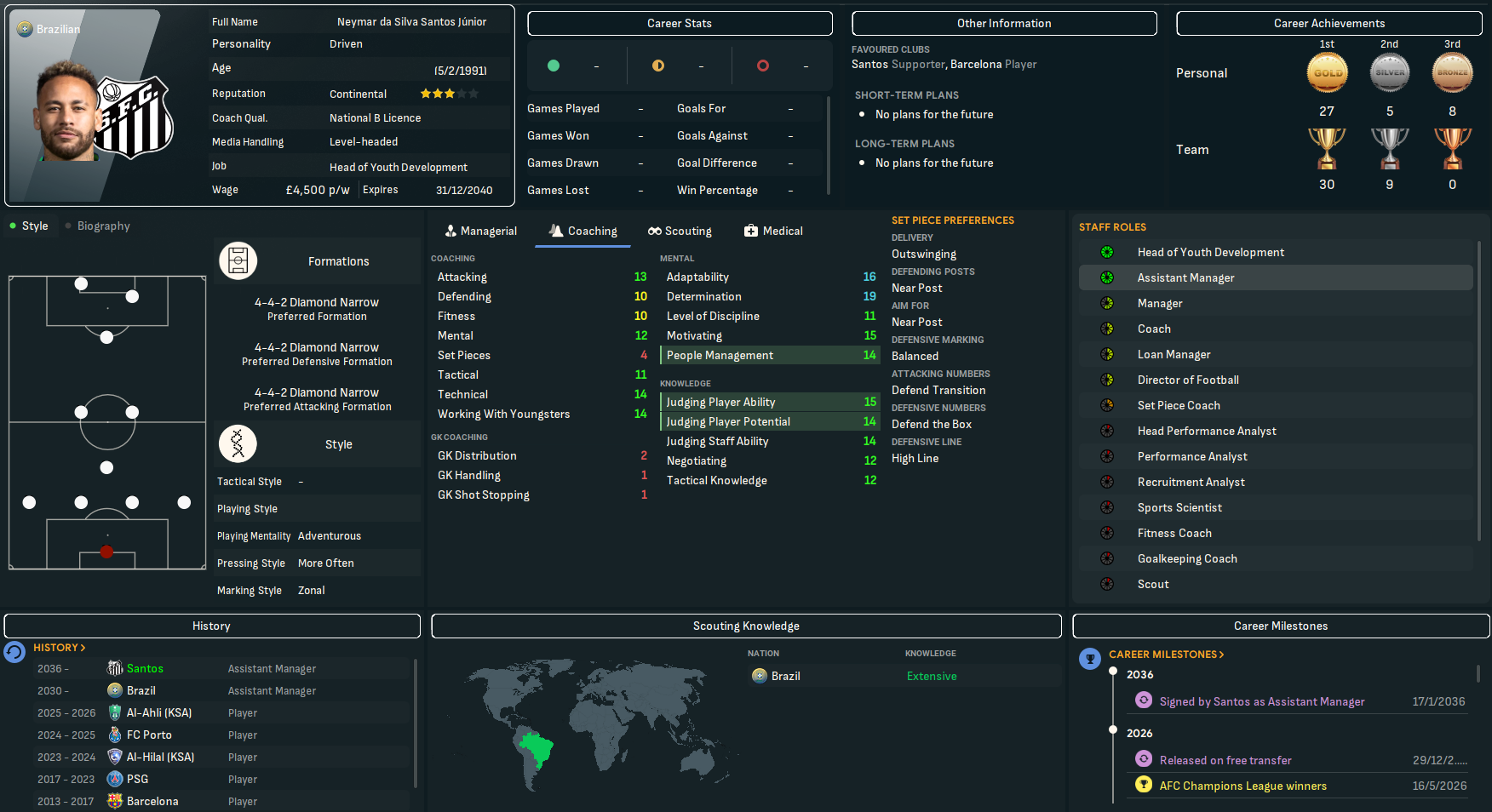 Thanks for reading this Salvando Santos adventure on FM24. I only started this series when we discovered that FM25 was being delayed – and part of me wishes I’d held onto the idea with the recent rumours that Neymar could be returning to his boyhood club! But it’s been a really fun save in which we focused on youth development and brought through some great youngsters who led Santos to huge success.