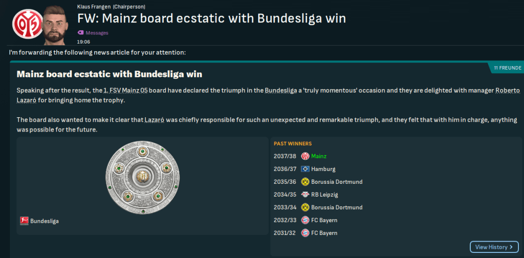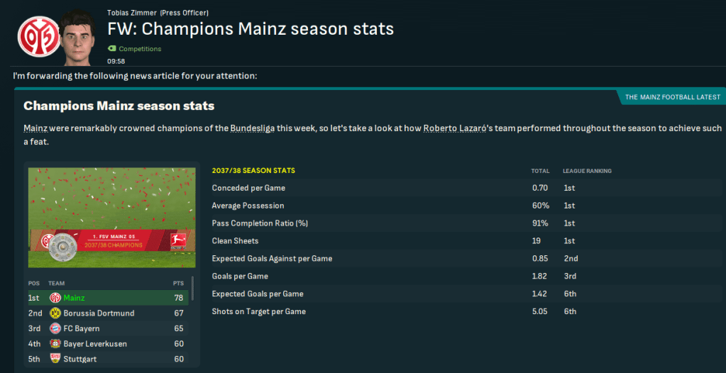 Could Mainz defend their Bundesliga crown? And how would they fare in the Champions League? Join us next Friday to find out!