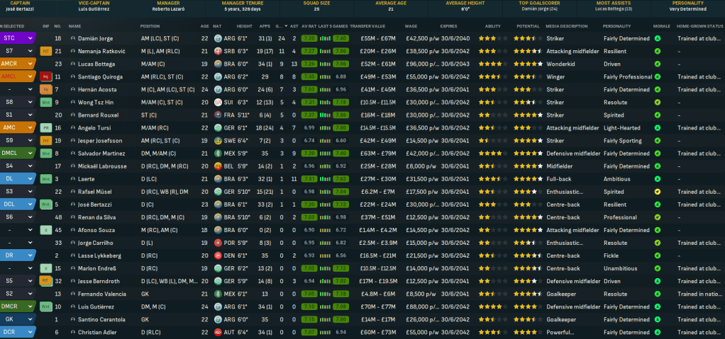 The summer of 2037 saw £23m of sales led by goalkeeper Daniel Schroder, who lost his position as number one to Santino Cerantola after conceding 2 goals per game last season, to Dortmund for £14m. But Lazaró saw no need to bring in reinforcements as he looked to further blood his existing talents, promoting the likes of 6ft 4in striker Jesper Josefsson and Mexican goalkeeper Fernando Valencia.
