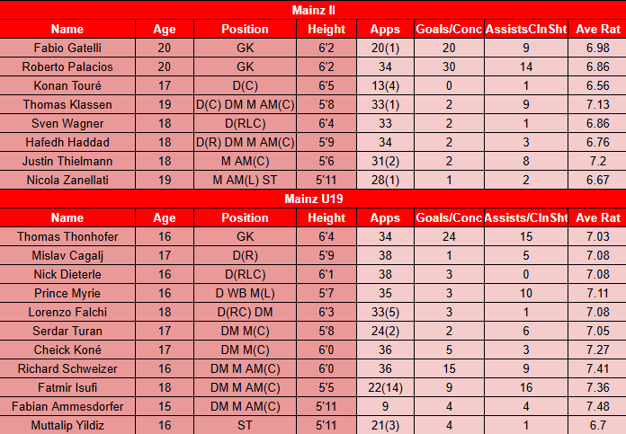 The U19s had a better season as they won U19-Bundesliga Sud/Sudwest and the A-Junioren-Meisterschaft. The stars of their team were midfielders Richard Schweizer with 15 goals and 9 assists and Fatmir Isufi with 9 goals and 16 assists and 16-year-old goalkeeper Thomas Thonhofer. See all their stats by clicking the table below: