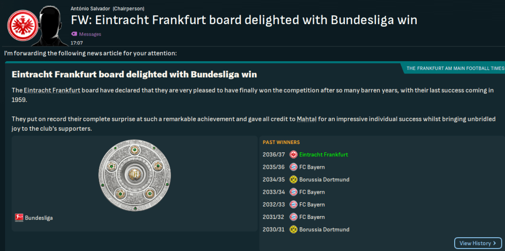 So two days after leading Frankfurt to the Bundesliga title, Mahtal resigned for the fifth time in his career and began the search for club number six. Where would he end up? Join us on Friday to find out!