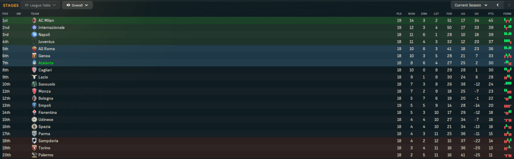 The solid form continued as Petrov and wonderkid Alberto Mondino earned a 2-1 win at Fiorentina, before 1-1s against Parma, Udinese and Empoli. Kehl’s pair of second-half penalties earned a 3-1 win at Bologna and midfielder Luca Mauri created both goals in a fortuituous 2-1 over Cagliari. The year ended with a 1-0 defeat at Sassuolo before getting steamrollered 3-0 at home by Roma, but Atalanta went into 2039 sitting in a very pretty 7th position, 16 points clear of any relegation concerns. Atalanta’s solid showing in the first few months saw the board reward Mahtal with a new three-year contract that doubled his wages to £6,500 per week.