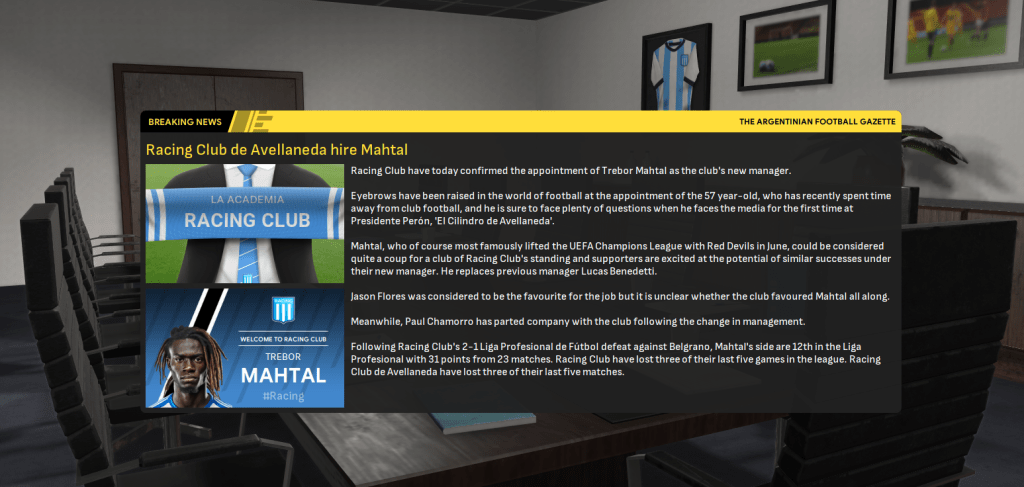 Mahtal resigned from his Old Trafford role one day after becoming Champion of Europe and went in search of his next challenge. After two dominant seasons with strong teams, Mahtal was keen for a bit more of a challenge. A few interesting opportunities were available, and he applied for several jobs as far away as Australia, Argentina and England. Two clubs quickly came in with interview offers, and one was clearly more keen – which meant Mahtal was off to Argentina to take a £116,500 wage cut!