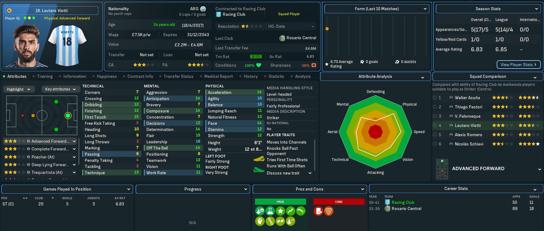 The move from Manchester United to Racing Club had certainly raised eyebrows and had been a far from easy transition for Mahtal. He’d struggled to get results but his enforced focus on youth, including handing five debuts to youth products, had seen several players enjoy rapid improvement, including the flourishing Schiavi who was definitely one to build the team around. This season, Acuna led the way with 16 goals in 34 games and the rest of the squad combined only managed 26 goals between them. Viotti scored 9 but struggled at the end of the season and Rivarola was probably the best performer in Mahtal’s time at the club, scoring 8 in 40.