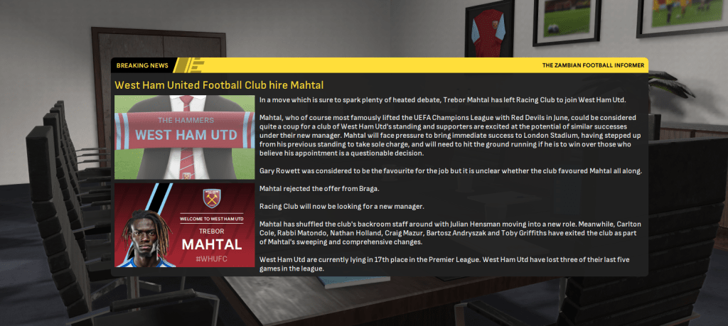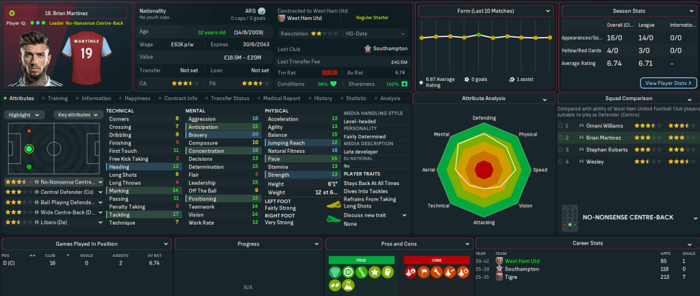 So when interest in the Zambian ratcheted up in December 2041, he was very much prepared to consider it. That interest came from Europe as Braga and West Ham United offered him interviews, and the wages on offer left Mahtal with an easy decision. And after six months in Argentina, he was heading back to England with a ten-fold wage increase to £35k per week.