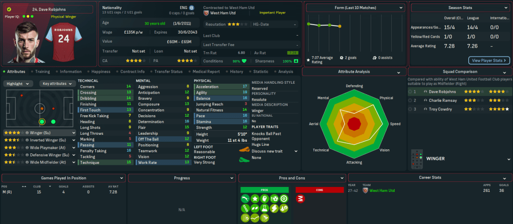 Mahtal had seen plenty of positives at West Ham, but there was a lot of work required to take them to the next level. And that included clearing the ongoing debt at the club. The biggest positive was the unexpected Carabao Cup win, which earned them European football next season. Sánchez led the way this season with a pretty disappointing 16 goals in 47 games, but their best performer was clearly Robjohns with 14 goals and 5 assists. Beyond that, there wasn’t much to shut about and Mahtal had a clear idea of players he needed to move on.