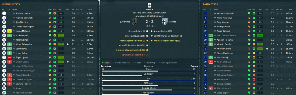 Colaric announced himself in style as he picked up the ball out wide, cut inside and unleashed an unstoppable strike 3 minutes into his debut at home to Parma. A wasteful performance followed before Lignon idiotically got himself sent off and Parma equalised. Another debutant restored the lead as Belezyako headed in from a freekick before another cost them the win through Ozturk’s own goal from a corner. They also weren’t great at Verona as Singh got sent off and only a late equaliser earned another 2-2. Mahtal’s second home game was against his former club Roma and they again got a good start through a brilliant Vázquez goal. But they conceded to another set piece to open with three draws.