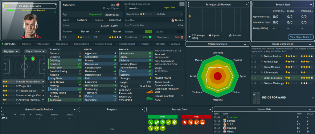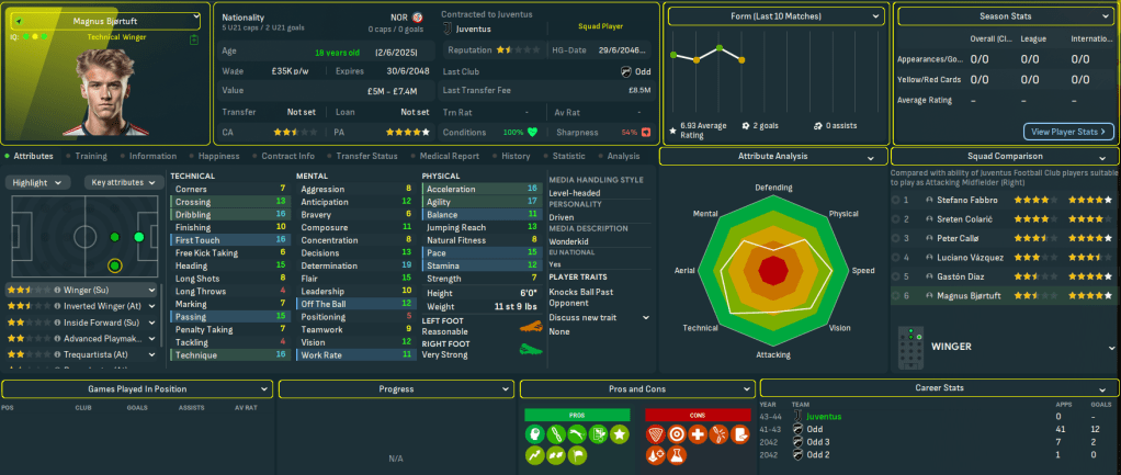 Bjortuft scored 50 minutes into his home debut to secure a 1-0 over Spezia. But Mahtal transitioned towards a 3-5-2 approach towards the end of the season, which required all his wingers to retrain as wing backs and, unsurprisingly, was a struggle at first. But it soon delivered three consecutive wins without conceding, including Ngomba earning a 1-0 over Lazio in Mahtal’s 800th game in football management, before Fabbro nicked a 2-1 derby win at Torino to move Juve into Champions League contention.