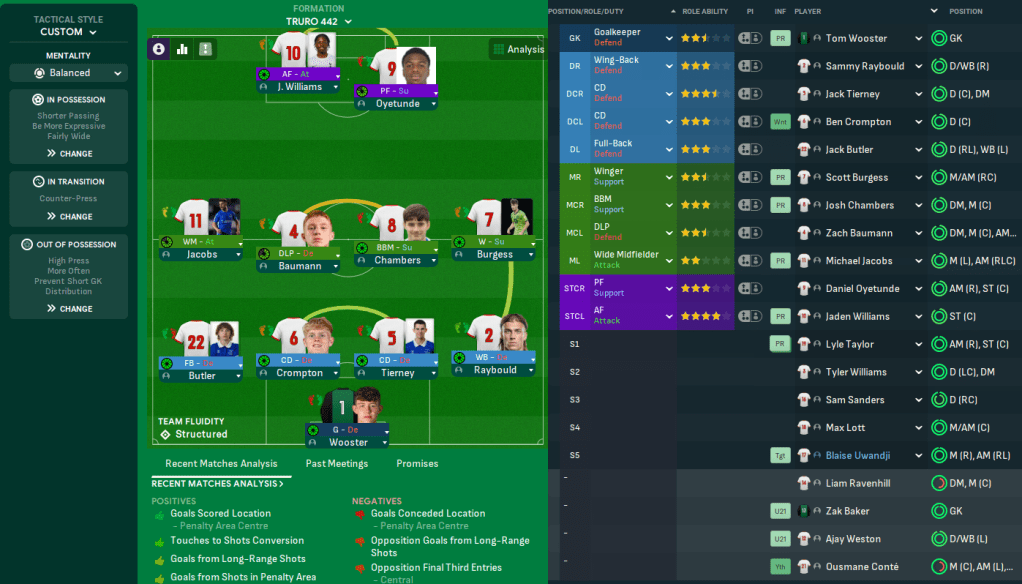 The signings of Jaden and Odetunye convinced Trevelyan to switch to a 4-4-2. The squad now has an average age of just 21, with Jacobs by far the oldest player at 33 and only four players aged over 23. So Trevelyan wasn’t expecting these players to gel immediately but they did have masses of potential.