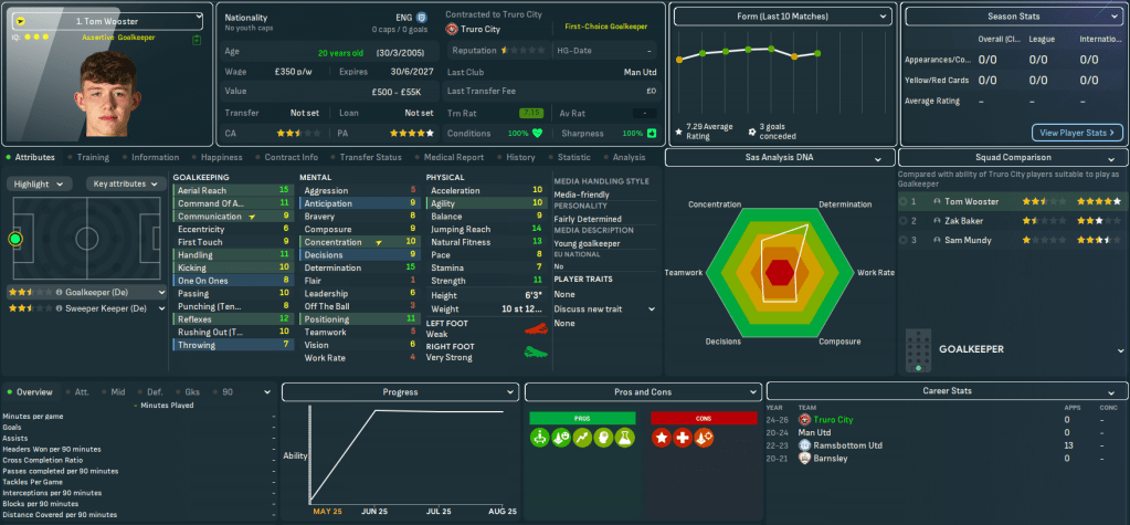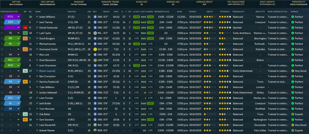 That began with off-field improvements as the new owner agreed to improve youth recruitment and junior coaching, spent £400k on the training facilities, and funded Trevelyan’s Continental B licence studies. The squad rebuild began with a mass exodus led by star player Jaze Kabia, who demanded £5k per week to extend his contract which, for context, would be nearly half the club’s wage budget! He departed along with club legend Stewart Yetton, who retired after a club-record 159 league goals and stayed on as assistant manager, fellow long-serving midfielder Tyler Harvey, goalkeeper Dan Lavercombe, left back Ryan Law, and centre back Tom Harrison.
