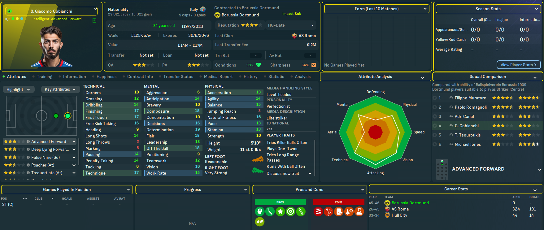 Trebor Mahtal ticked off the ninth leg of his Alphabet Challenge as he led Juventus to its first Serie A title for 25 years in 2045. The Zambian now went in search of his 12th club and immediately eyed up a few interesting roles.