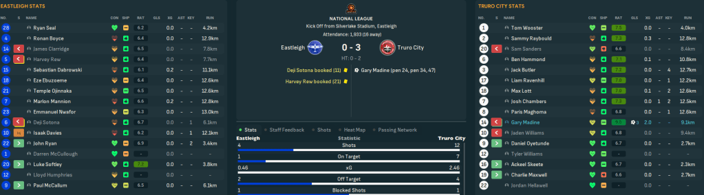 With the cup distraction out of the way, Trevelyan was fully focused on maintaining Truro’s push to the top of the National League. They annoyingly lost Forster to Blackpool for £37,500 on deadline day, but luckily he returned on loan for free. Truro got over the Brentford disappointment with striker Daniel Oyetunde and Wakili earning a 2-0 win at 6th-place Rochdale before losing 1-0 at 3rd-place Sutton and Aldershot. But Jaden got them back on track, scoring the only goal at home to Halifax then both goals at Dorking.