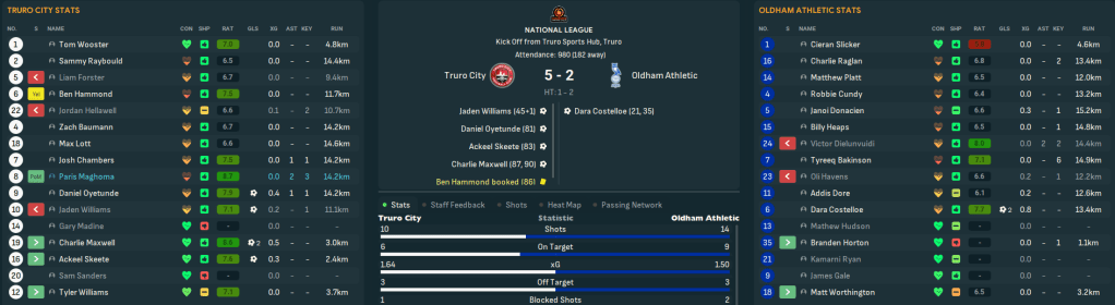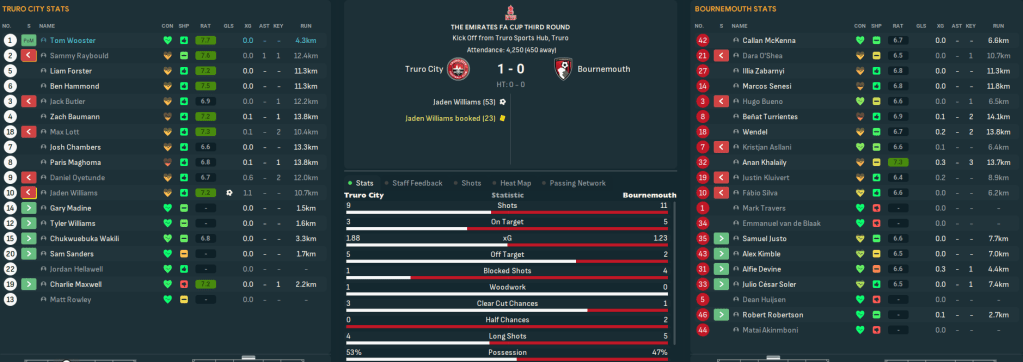 Truro’s cup heroics were in full force again as Maghoma scored the only goal in the FA Cup first round at home to League One Stevenage and Jaden stepped up with a brilliant four-goal haul to down League Two Mansfield 4-1. Another disappointing third-round draw saw them get Bournemouth at home. But the now Championship team played a league game three days before, rotated, completely underestimated their opponents and found Tom Wooster in inspired form, making 5 saves to keep them out while Jaden turned home Raybould’s low cross on 53 minutes. And this was a deserved win, as Truro had more xG and more possession to defeat a top-tier club!