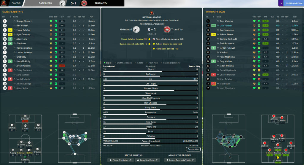 Game 4 – Gateshead (13th, away): Potentially the best season in Truro history ended with probably its longest journey as they trekked 439 miles from Cornwall to Gateshead in the northeast. And, understandably, only 13 away fans made the trip! Truro again bossed the game but couldn’t finish, before being given a helping hand as Williams’ shot was harshly awarded as an own goal after an hour.