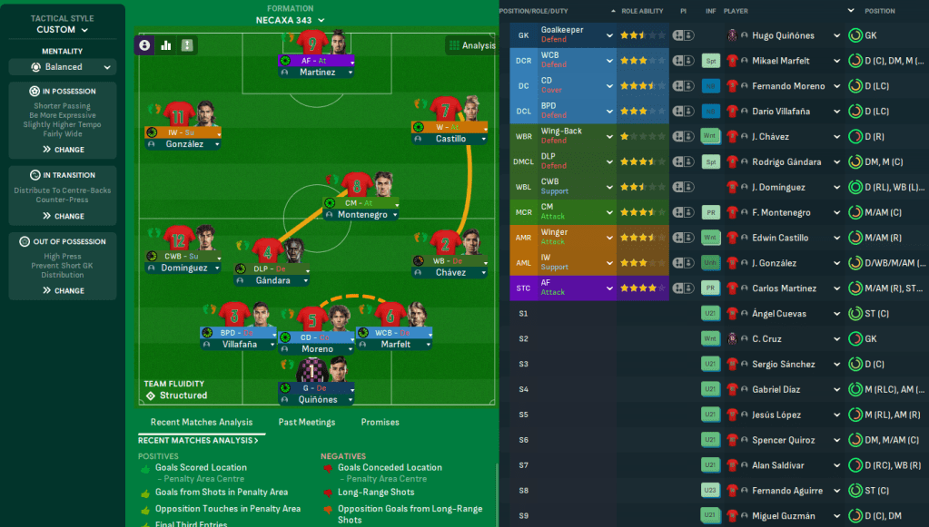 He then bolstered the squad with left back Joaquin Domínguez for up to £4m from Instituto, striker Ángel Cuevas for £2m from Querétaro and goalkeeper Hugo Quinónes for £500k from Millonarios. He also promoted promising centre back Sergio Sánchez after ending his two-year loan. With those players in, Mahtal finally decided to revert to three at the back while retaining his two wingers.