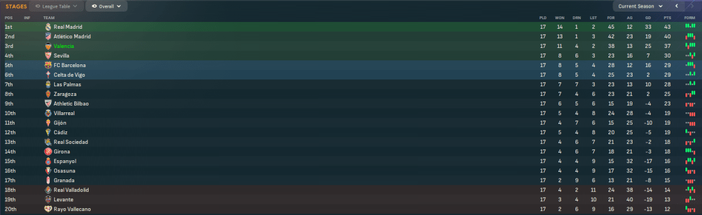 The strong start continued, including a 4-0 win at Cádiz, before a disappointing 2-1 defeat at home to Osasuna. They lost 3-1 at Real but were clearly better than the rest of the league, which was evident Munoz and Domínguez inspired a 2-0 win over 5th-place Bilbao. Indeed, that took Valencia into a new decade sitting pretty in 3rd, well clear of struggling Barcelona and 6 points behind leaders Real.