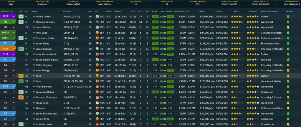 Mahtal was delighted with the improvement in his Valencia side, pushing Real all the way after some cup disappointment. Torres led the way with 37 goals in 53 games, while the ever-improving Combes racked up 18 goals and 17 assists in 50 games. Also impressive were Munoz (9 goals and 14 assists), Lobo (8 goals and 15 assists) and Sullivan (6 goals and 14 assists).