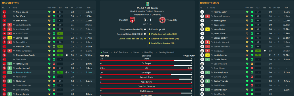 Truro went beyond the Carabao Cup first round this season, beating Championship side Plymouth on penalties after a 2-2 home draw. Another Championship side Fulham followed, as did another 2-2 and another penalties success as Wooster saved two spotkicks. That teed up Truro’s first-ever clash with an English big boy as they faced a trip to Old Trafford. They performed well to only lose 3-1 to Man United with a Shaqueel van Persie and a Rasmus Hojlund brace, but Truro bagged £512k in gate receipts.