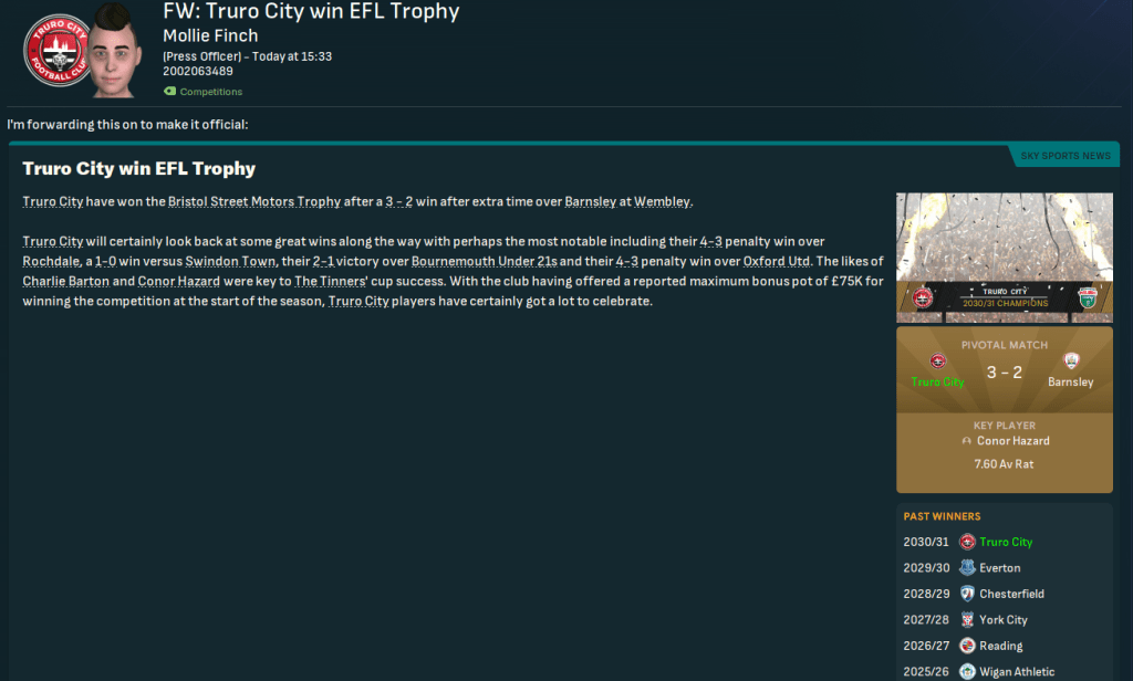 Could Truro build on their first League One playoff place and push for promotion in 2032? Join us next Wednesday to find out!