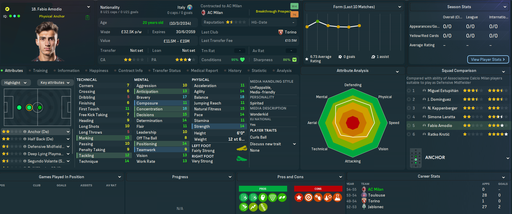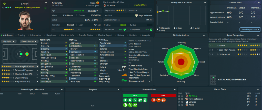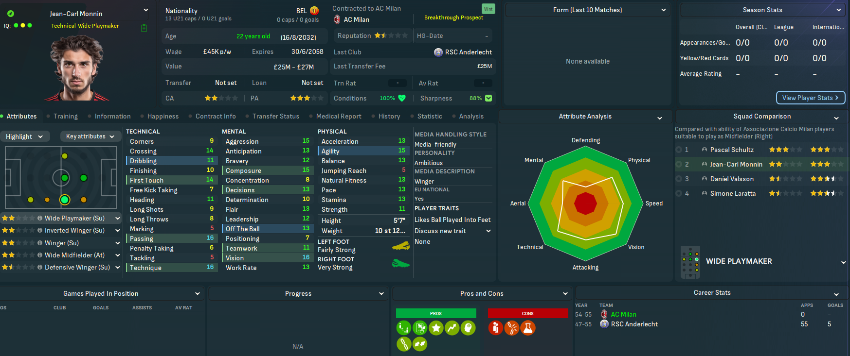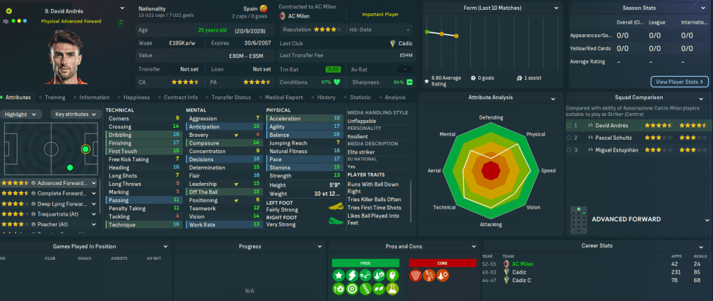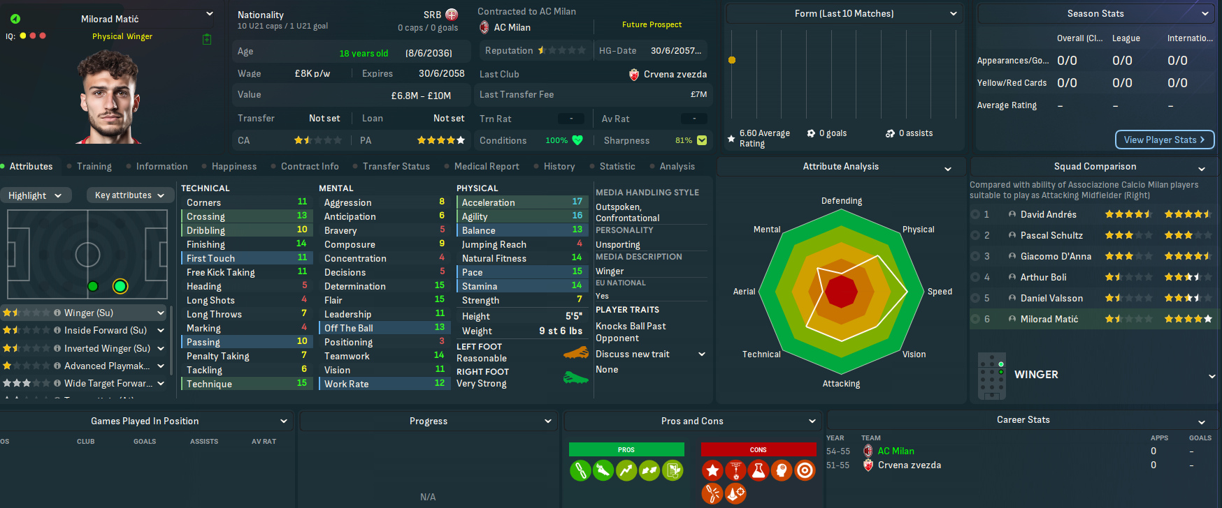 AC Milan still play at the 75,710-capacity San Siro, which was built in 1926 and has perfect 20 infrastructure. Mahtal walks into a club with £61m in the bank, a £50m transfer budget and has £600k of its £4.1m weekly wage budget going spare. Last season, Milan finished a lowly 7th in Serie A, a huge 41 points behind winners Napoli. That was largely due to the usual dross Mahtal discovered when he joined a new club, so he carried out his usual firesale to bring in £177m for 19 players. And, in truth, he probably sold too many players and left the squad a little short.