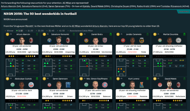 The potential at the club was proven by Cissé winning European Golden Boy before Milan had four players in the NxGn 2056 top 10, led by winner Alarcón and Remorini in 2nd, and seven players in the top 50. While the under 20s won Coppa Italia Primavera, won the league by 35 points