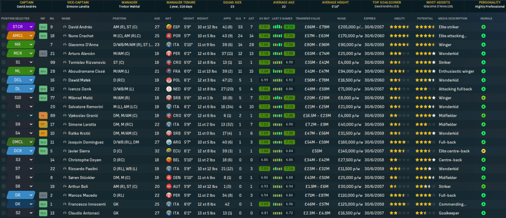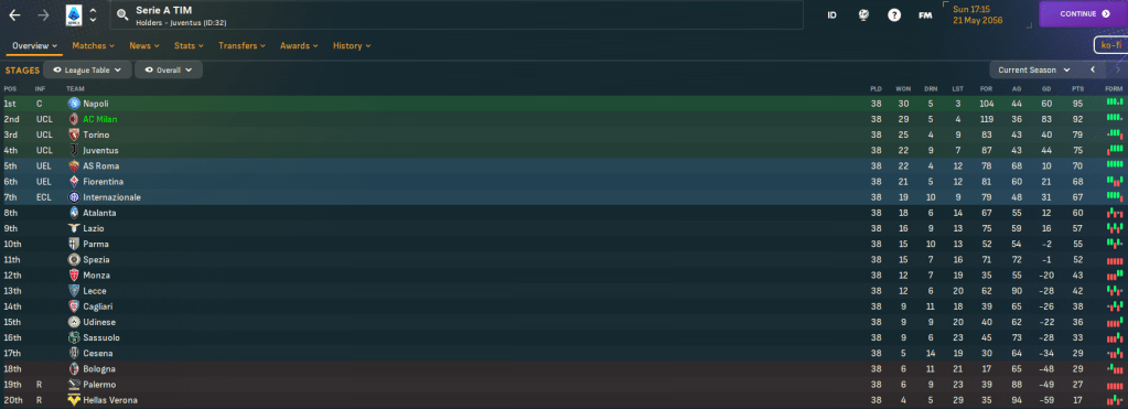 AC Milan secured a solid 5th place after a massive summer clearout as Trebor Mahtal took control of his fourth Italian club. The Zambian now faced another big summer as he looked to bridge a big gap to the big two of Juventus and Napoli.