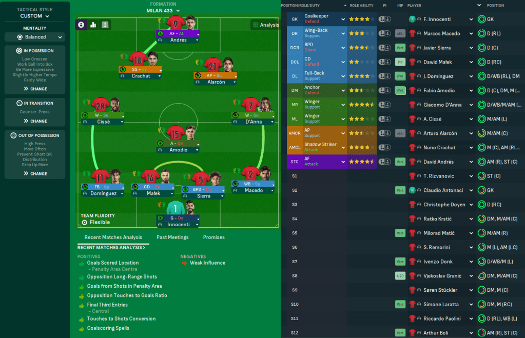 Milan lost for the first time at Mahtal’s former side Roma. But the increased attacking threat of the new approach shone through as Andrés scored two in a 4-0 thumping of city rivals Inter. Another big home win, with Andrés scoring another hat trick in a 6-0 domination of Bologna, saw Milan go into the new year tied on points with Valencia and as by far the top scorers in Serie A, having bagged 61 and conceded just 12 in 18 games.