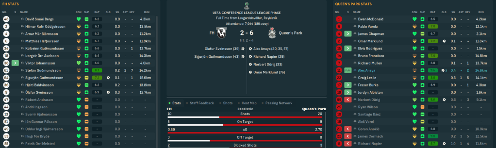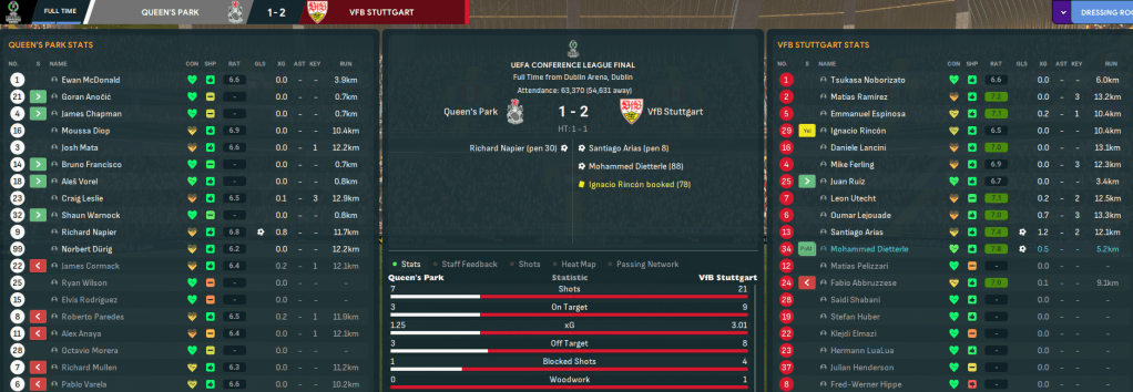 Queen’s Park realistically had absolutely no chance of winning the Conference League Final, having reached the final in their first-ever season of continental football. They faced off against Stuttgart, who had five players who earned more per week than their entire squad combined. They lost centre back Omar Marklund and semi final hero Burke to knee ligament injuries, so Mahtal lined up: