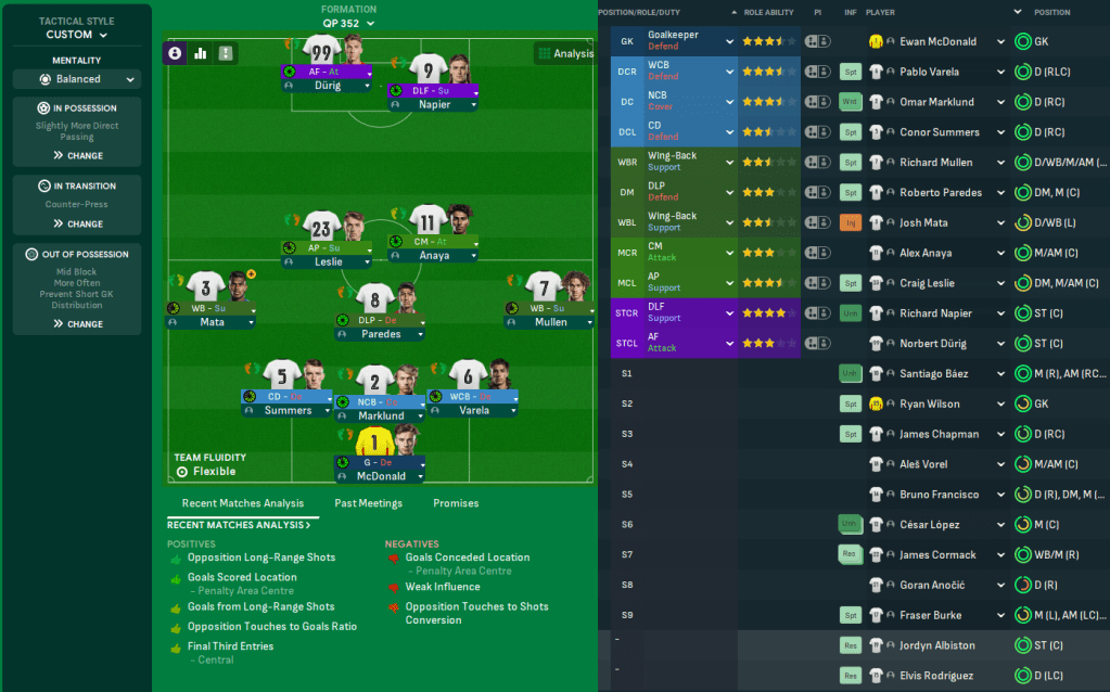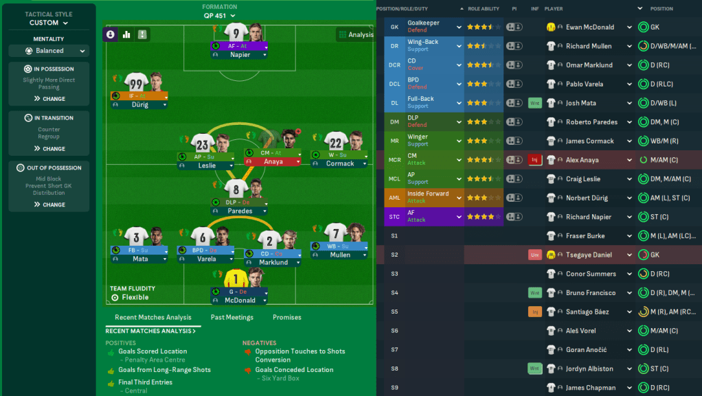 McDonald; Mullen, Varela, Diop, Mata; Paredes; Cormach, Anaya, Leslie, During; Napier