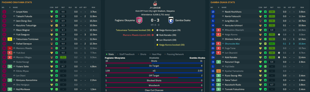 The 3-4-3 started nicely as Ryoo’s first two senior goals earned a 2-1 win at home to Shonan Bellmare before a really solid 0-0 at 4th-place Vissel Kobe. Those crucial points moved Gamba 11 clear of relegation with 10 games remaining. Fortuin bagged his first goal in a 2-1 win at 16th-place Sagan Tosu, and exciting youngster Osada ran the show with a goal and an assist to defeat Kyoto Sanga 2-1. That saw Osada become Gamba’s youngest-ever goalscorer aged 16 years 272 days.