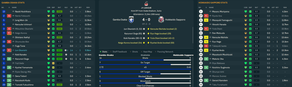 Mahtal’s time in Japan began with three huge relegation clashes within two weeks of being in the country. First up was a trip to 19th-place Fagiano Okayama and they got handed a great start as Konno converted a penalty before Kaneko and striker Jun Okanishi put them 3-0 up inside 38 minutes. Three days later, they entertained 17th-place Yokohama FC and a late strike by sub Soga earned a crucial 2-1 win that moved them 5 points clear of the dropzone. A week off was followed by entertaining bottom-side Hokkaido Sapporo, who were easily dismantled 4-0 led by an Okinashi brace.