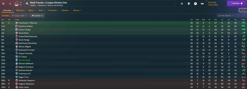 Gamba has two Japanese titles, in 2005 and 2014, and won the Asian Champions League in 2008. However, it’s not finished in the top three of J1 League since a 2nd-place back in 2020. Mahtal only switched on the Japanese league in January, but Gamba have become a very midtable club, finishing between 7th and 16th ever since being promoted back to the top tier in 2043. Gamba still play at the 39,694-capacity Osaka Stadium, which is supported by 19 youth recruitment and 14 training and youth facilities and junior coaching.