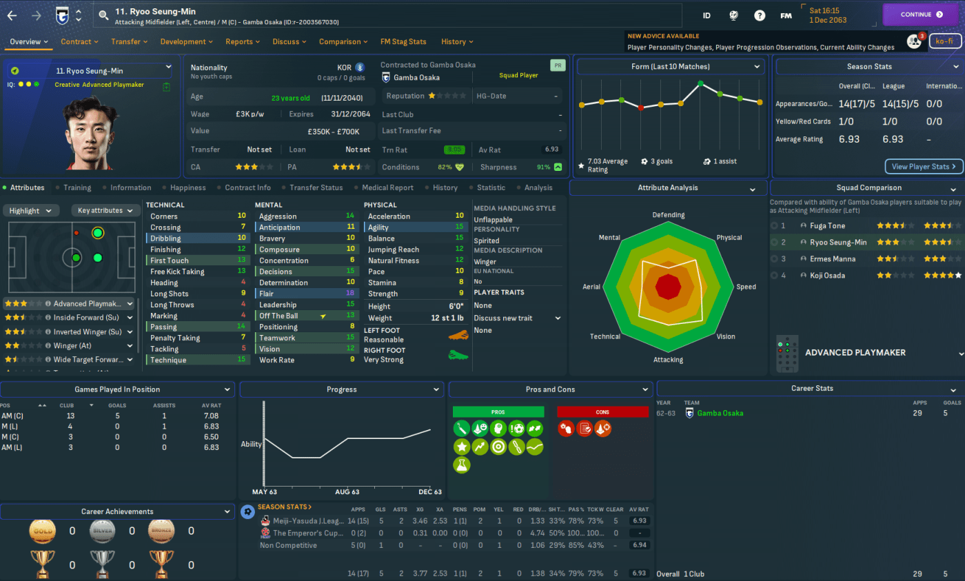 Mahtal was relatively pleased with the start he’d made in Japan. He had a tricky job turning around a struggling side that had a few too many older, underperforming players. He’d managed to get a reaction from a few of the players while putting faith in some of the club’s young prospects, but it was clear they needed more output. Kaneko led the way with just 9 goals in 26 games followed by Fortuin, who’d made a good start with 5 in 10, Ryoo with 5 in 31 and Tobori with 5 goals and a club-high 6 assists in 41 while learning a new position.