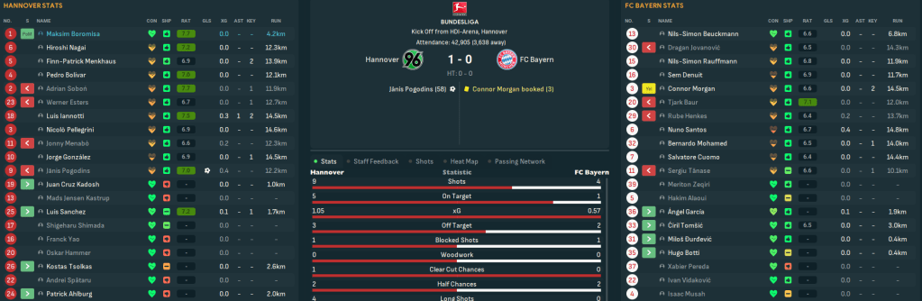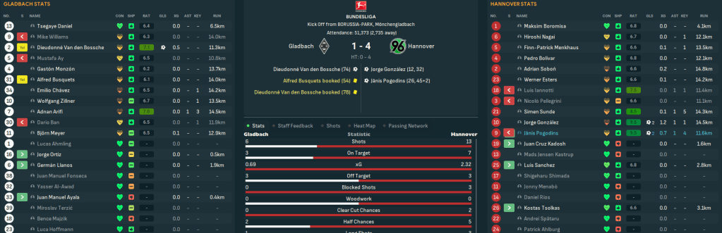 Hannover began their Bundesliga return with a trip to fellow promoted side Schalke. And they started well as Iannotti’s debut goal and a solid defensive effort earned a 1-0 win. They also defended pretty well in their first home game as González’s late goal earned a point against Stuttgart. But some really tough tests followed, starting with a trip to favourites Gladbach – who clearly underestimated them as Pogodins’ first two goals and a Gonzalez brace put them 4-0 up before halftime!