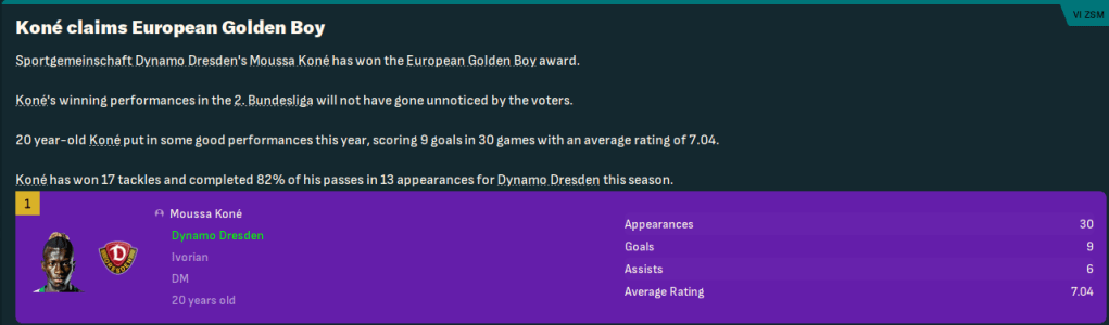 The potential at the club was highlighted by star man Koné becoming Dresden’s first-ever winner of European Golden Boy, while Tafat came 3rd in NxGn with Zaracho 40th and Manukyan 49th.