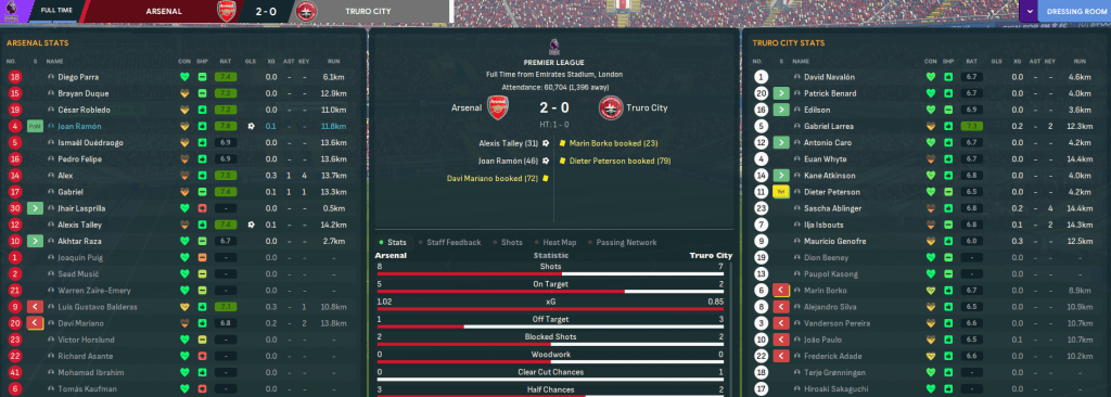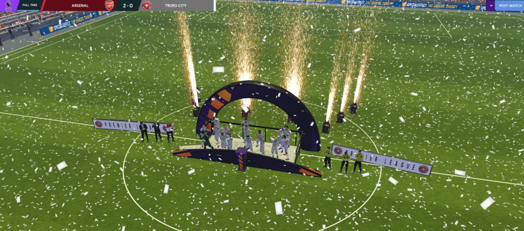 Game 5 – Arsenal (15th, away): That took the title fight to the final day as Truro travelled to struggling Arsenal with a 2-point lead over UFC, who visited bottom side Reading. Truro played absolutely terribly while Arsenal managed to score their first two shots to win 2-0. But it didn’t matter as UFC somehow lost 4-0 at Reading!