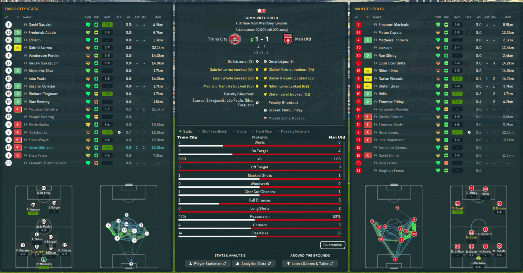 The 2042/43 campaign began with Truro’s first Charity Shield against Man UFC. A terrible match began with UFC scoring their only shot of the first half, but Truro grew into it and Isbouts smashed in from close range. That took it to penalties and David Navalón saved the first and third to win the Charity Shield!