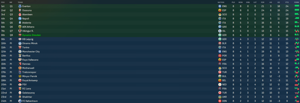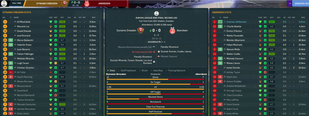 Dresden took on Shakhtar in the last 16, cruised to a 3-0 win in Ukraine and a rotated side won 3-1 at home. Next up was Torino and an impressive performance in Italy, which they dominated by 15 shots to 8, led to Tafat and Ronning earning a 2-1 victory before a 1-1 at home took them into the semis. That teed up a clash with Aberdeen while Rennes faced Atalanta in the other semi. Koné’s penalty was enough for a 1-1 in Scotland, in a game Dresden bossed by 10 shots to 7. Mahtal rested the first 11 for the league game between the two legs, and the second began with Koné missing a penalty and Tafat getting injured. A dreadful game ensued and it got the penalty shootout it deserved, and Machacek saved Aberdeen’s first to send his side into their first-ever major cup final!
