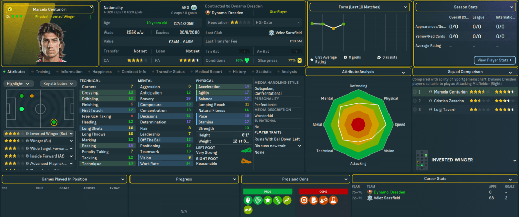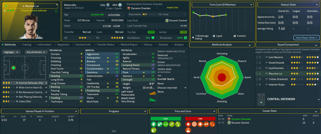 Dresden ended the 2075/76 campaign with two shots at cup glory, for which they had Tafat and Lai missing with injuries. First up, fans from Germany and Italy descended on Poland’s Legia Stadium as Dresden faced off against Mahtal’s former side Atalanta in the Europa League Final. Mahtal slightly tweaked his approach, bringing in a second striker and lined up: