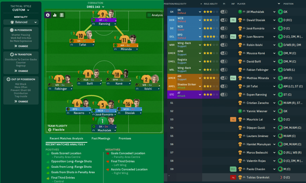 Mahtal really wanted to add a striker but struggled to find one, so he gave Espen Ronning one last chance. Before the Ríos sale, he’d been mulling over returning to a 4-3-3, but decided to stick with the 3-4-3 approach. He was looking for much more from star man Mathías Miranda and Jiri Tafat behind the striker, with the impressive Moussa Koné now the main man in midfield.