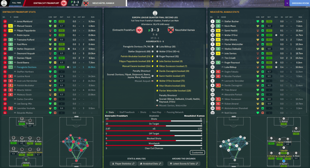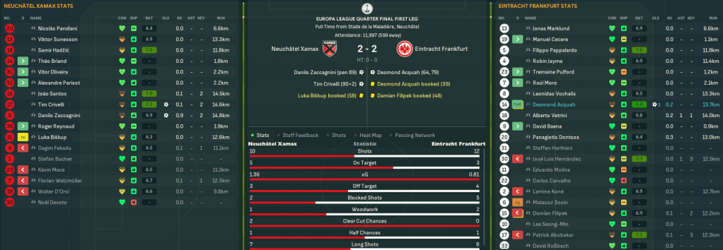 Thankfully, they avoided Barca and drew Trabzonspor in the last 16. Winger Tim Crivelli and Santos nicked a 2-1 in Turkey before Hadzic, Crivelli and Fekadu secured a comfortable 3-1 home win. Next up was Mahtal’s former club Eintracht Frankfurt with an injury-hit side welcoming the Germans across the border first. Xamax held their own until they conceded a long shot after a corner and conceded again to seemingly kill the tie off. But they were offered some hope as Zaccagnini converted a late penalty, before a late push was rewarded as Crivelli smashed home a superb 30-yarder. Mahtal rested the first 11 for the league, and the momentum from the first leg carried into the second as Crivelli threaded Biskup through to slam into the top corner after 16 minutes. They held on until the 74th minute and conceded again in the 88th minute. But, in the 94th minute, Oliveira swung in a corner that D’Orsi powered home. Mahtal went more defensive for extra time and they immediately hit Frankfurt on the counter, only to concede straight away. And they held on for penalties. Both teams missed their third penalties and it went all the way to the eighth round, when midfielder Wurzmuller missed to suffer a cruel exit.