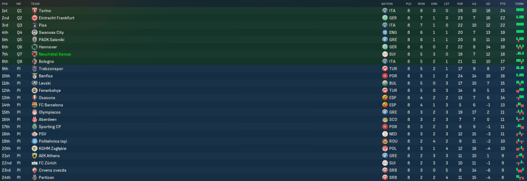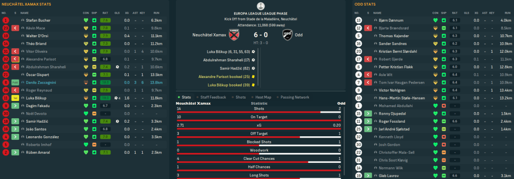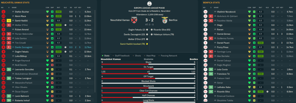 Xamax began the group with a trip to Swansea, who won the FA Cup from the Championship last season, and did well to earn a 2-2. Another UK away day took them to Larne and they eased to a 3-1 victory. Their first home game was tougher as Benfica came to town, but a flying start saw Fekadu, Zaccagnini and D’Orsi put them 3-0 up before halftime and, despite a bit of a wobble, they held on for a vital victory. A really tricky game followed at Marseille, but Xamax excelled again as Zaccagnini and Biskup earned an unexpected point. Fekadu nicked a 1-0 win at home to PAOK before Biskup bagged a brilliant four-goal haul in a club record 6-0 hammering of Odd.