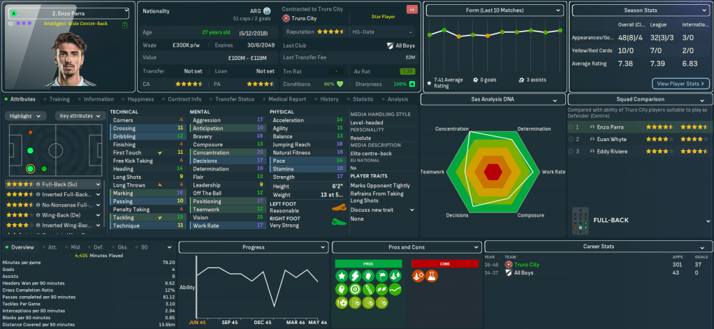 Enzo Parra: Parra signed for Truro’s Championship-winning campaign in 2037/38 for just £2m. He swiftly established as a superstar, winning the Premier League Player of the Year and being named the third-best player in the world in 2043. He’s also won 51 caps for Argentina.